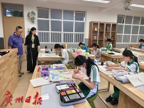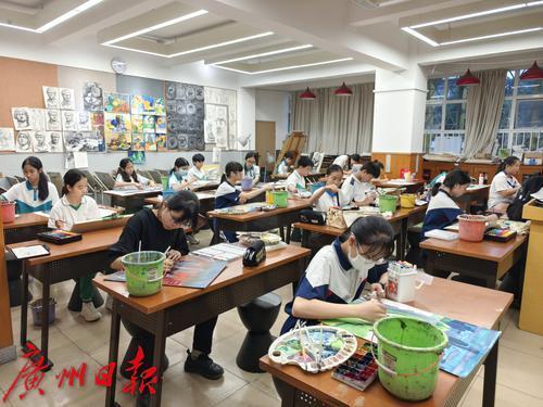 在西校区的绘画赛场,166名参赛学生屏息凝神,用画笔描绘出心中的“诗画海珠”。选手须在150分钟内独立完成作品,确保原创性。评委杨小彦教授表示,现场绘画考验孩子们在短时间内将对世界的反应转化为绘画作品的能力,从画面效果和质量来看,充分证明了海珠区美育教学的成功。