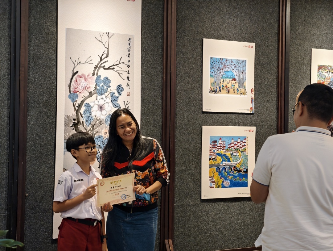 以文为媒架桥梁 印尼青少年“打卡”粤韵杯作品展