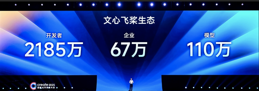 截至目前,飞桨文心开发者数量已超过2185万,服务超过67万家企业,创建的模型达到110万。