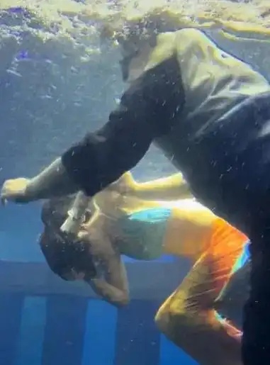 视频中,“美人鱼”身体微蜷曲且伴有抽搐症状,有游客觉察到异常在议论“她是不是在憋气”。也有人提出“不像是在憋气”,应该是出意外了。