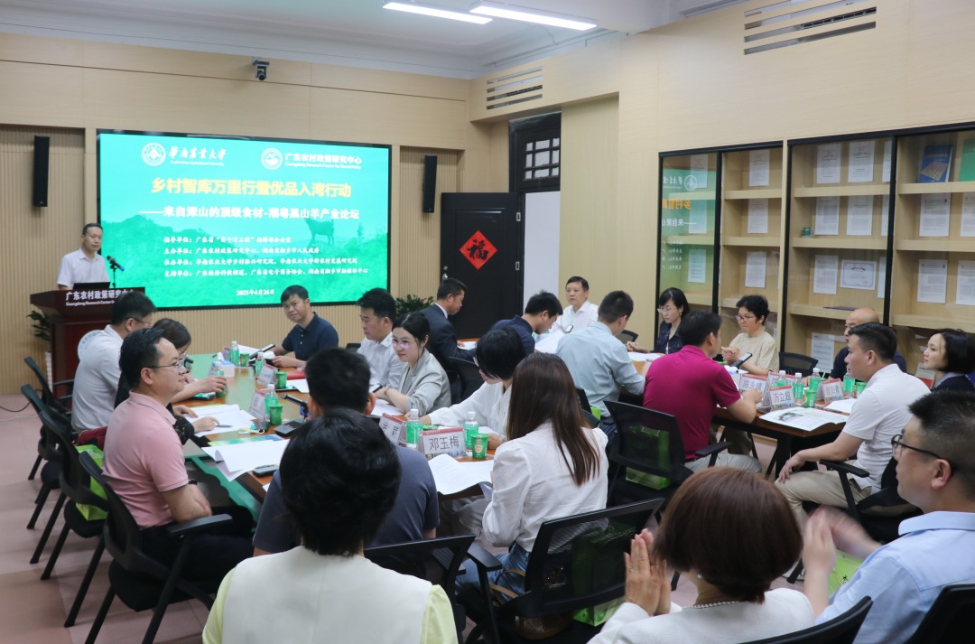 为深化湘粤协作、挖掘乡村产业潜能,助力广东“百千万工程”落地见效,4月26日,“乡村智库万里行暨优品入湾行动——湘粤黑山羊产业论坛”在华南农业大学举行。论坛聚焦“科技赋能+全链整合”,汇聚政策专家、产业精英、媒体代表与投资人等多方力量,以政策解读、案例分享、圆桌对话等形式,深入探讨黑山羊产业标准化养殖、精深加工、品牌营销等全链条发展路径,共同破解优质农产品“出山入湾”的产业密码,让藏在深山的生态美味走进粤港澳大湾区消费者的餐桌。