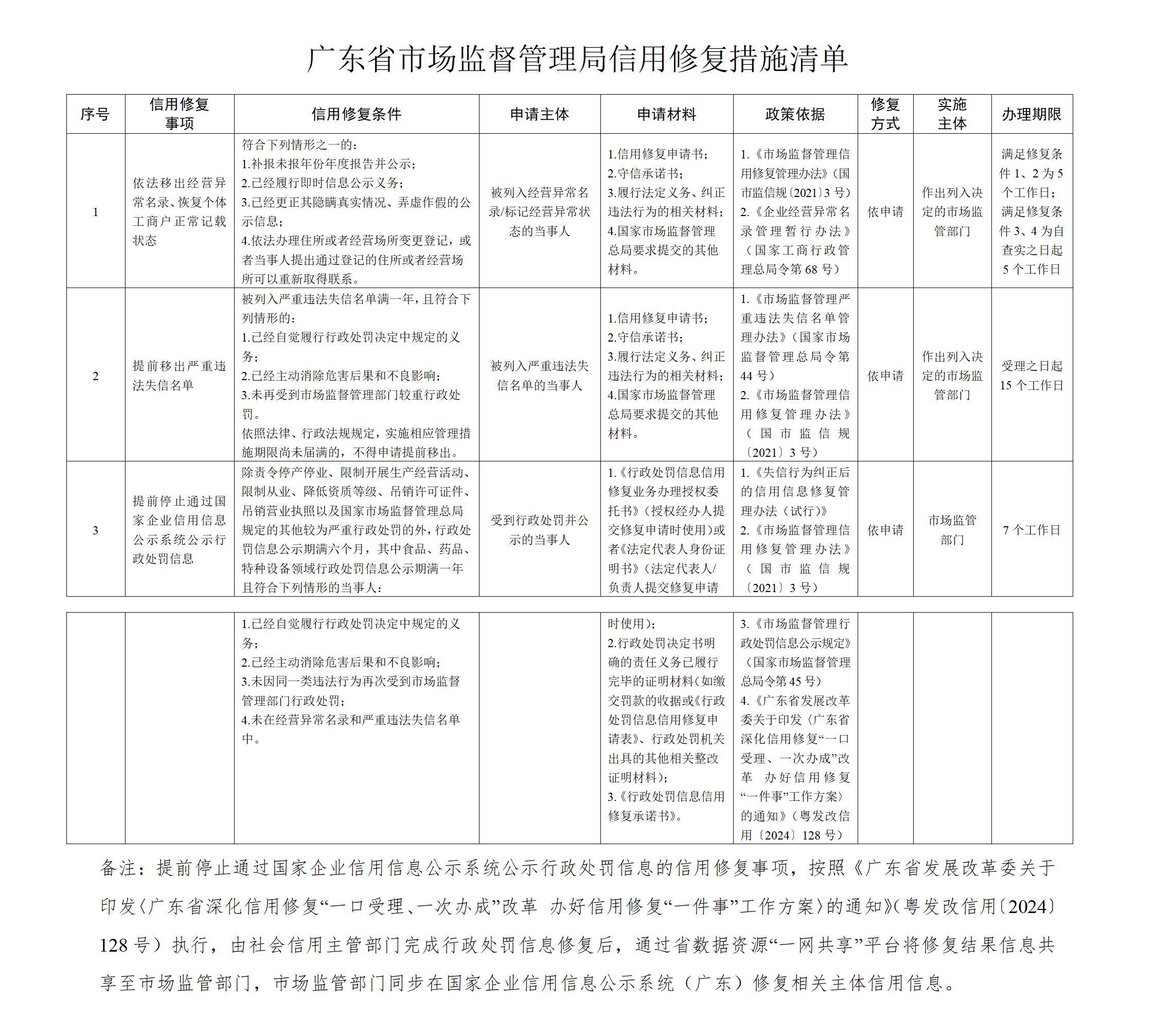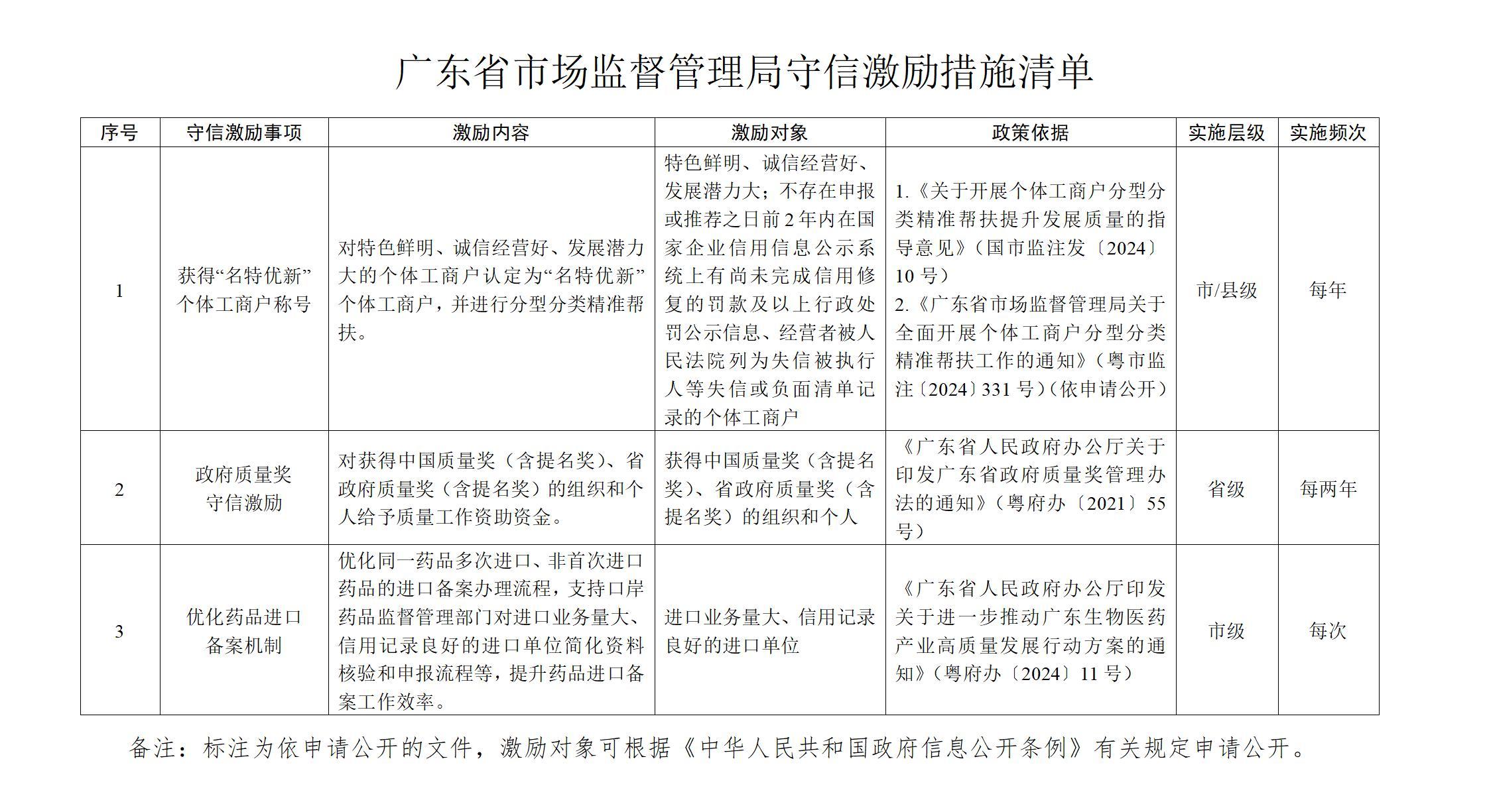 近日,广东省市场监督管理局正式编制印发省级守信激励、失信惩戒和信用修复措施“三张清单”,完善市场监管领域的守信激励、失信惩戒和信用修复机制,进一步健全以信用为基础的市场监管体系,引导更多经营主体守信、重信、诚信,助力打造“守信有激励、失信必惩戒、信用可修复”的社会环境。