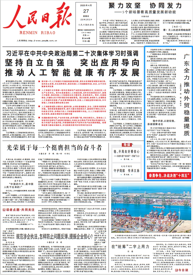 2025年4月27日《人民日报》头版报道