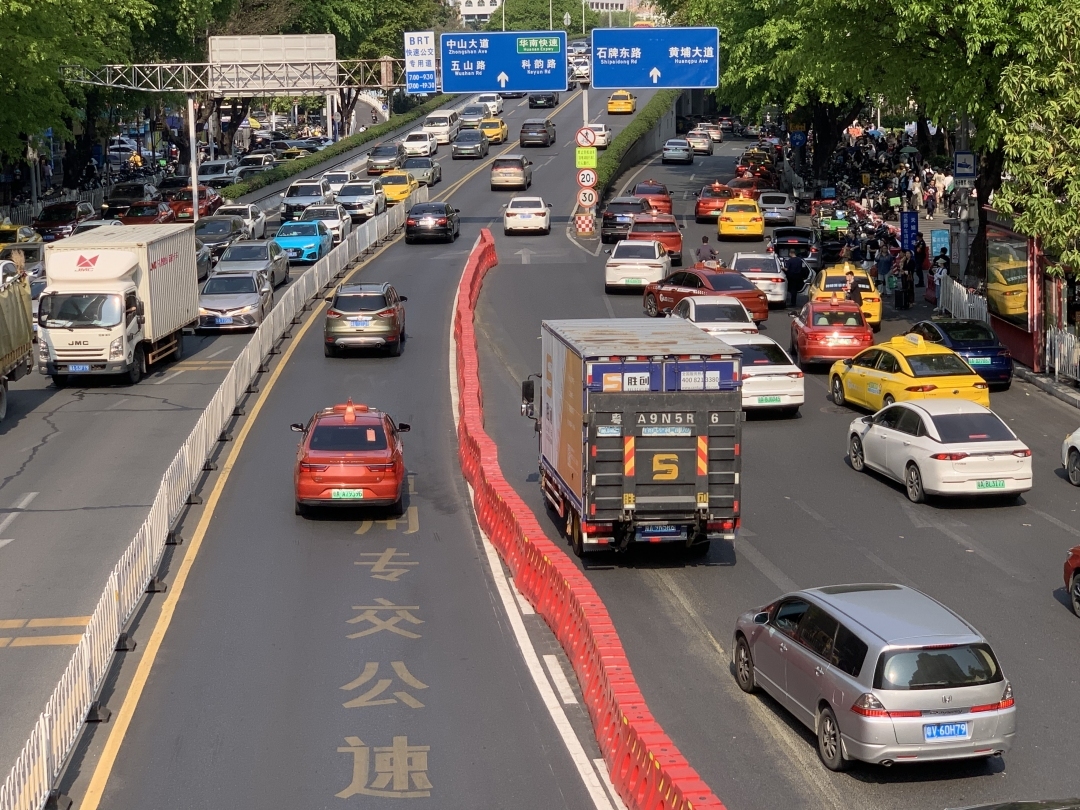 交通改善最为明显的当数岗顶一带路段。其中在中山三院对出位置的交通黑点,过去常有车辆违规压实线变道,影响从天河路辅道转入跨线桥的车流,造成天河路辅道出现拥堵。如今有关部门在实线位置设置了“水马”,阻止车辆违规变道,让天河路辅道汇入跨线桥的车流不再受阻,交通也因此畅顺了许多。