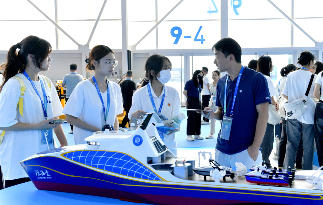 南方海洋科学与工程广东省实验室(珠海)携新型深海养殖平台“珠海琴”、底式桁架平台、组合式桁架平台等展品参展;哈尔滨工程大学带来国内首艘高速复合动力全自主无人艇“天行一号”,以及“北海号”无人艇等展品;
