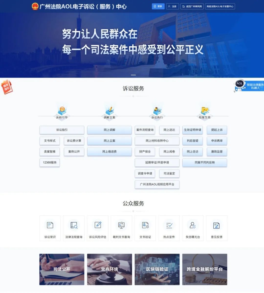 广州法院打造诉讼全过程信息公开链,系统根据当事人参与诉讼进度,自动推送立案通知、开庭提醒等6大类审判信息以及财产查控、限高等15种执行信息,每年公开各类流程信息超过2500万条。畅通信息获取渠道,AOL电子诉讼服务中心平台开设24小时12368网络咨询入口,诉讼信息服务平台和微信小程序集成提供200余项服务事项。