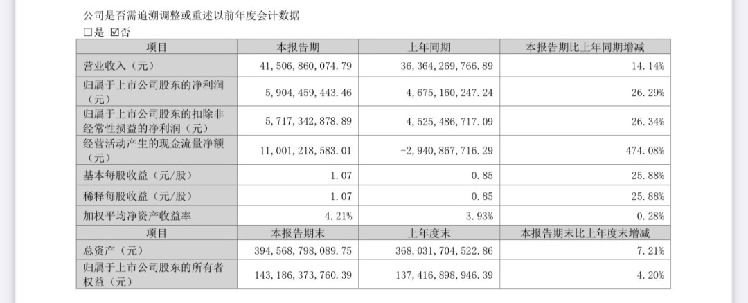 根据格力电器公布财报,今年一季度,公司实现营业收入415.07亿元,同比增长14.14%;归母净利润59.04亿元,同比增长26.29%。