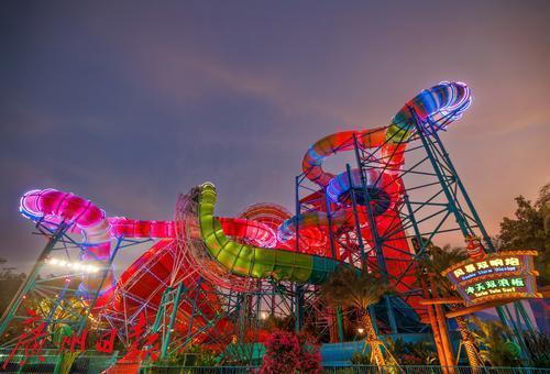 超长滑道蜿蜒如巨蟒盘踞天际。