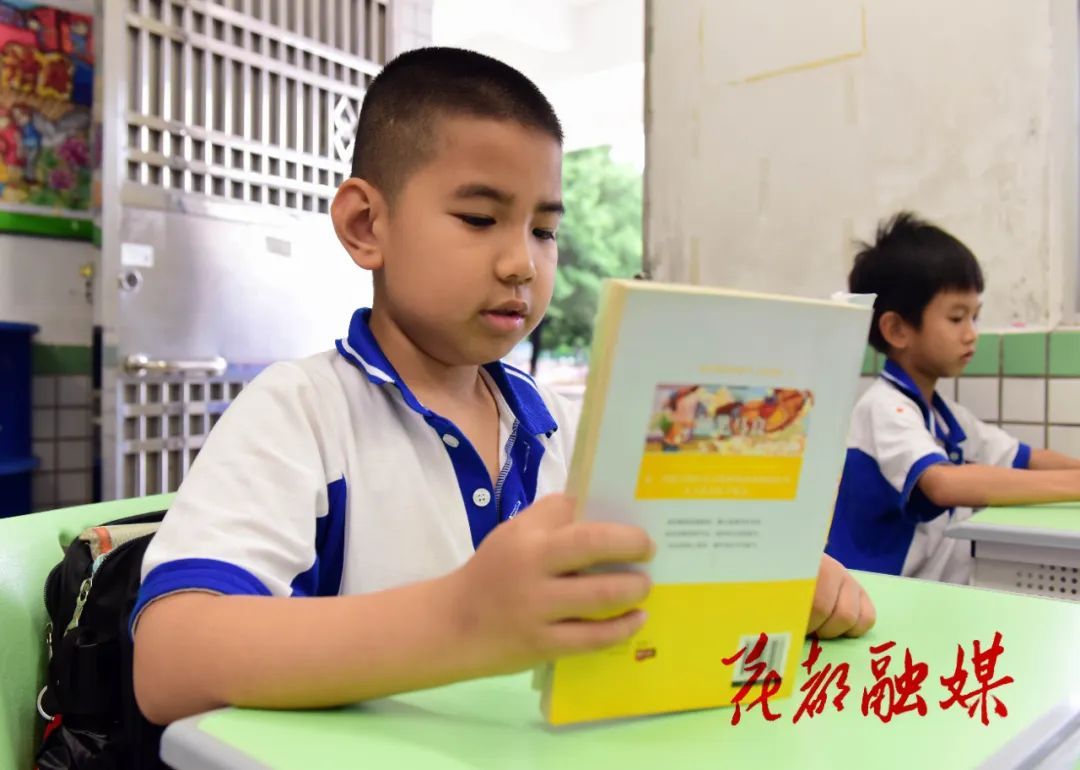 在新华七小二年级的课室,我们见到了这个阳光可爱的小男孩。当被问及如何爱上阅读时,彭梓锋眼中闪烁着光芒。他回忆道:“读幼儿园大班时看到哥哥老是去花都少年儿童图书馆看书,当时觉得好奇怪,为啥哥哥总去那里?后来我也跟着去了,就看到一楼绘本区有很多图画书,妈妈经常看着它讲给我听,从那以后我就喜欢上看书啦。”就这样,小小的绘本在彭梓锋心中种下了阅读的种子。