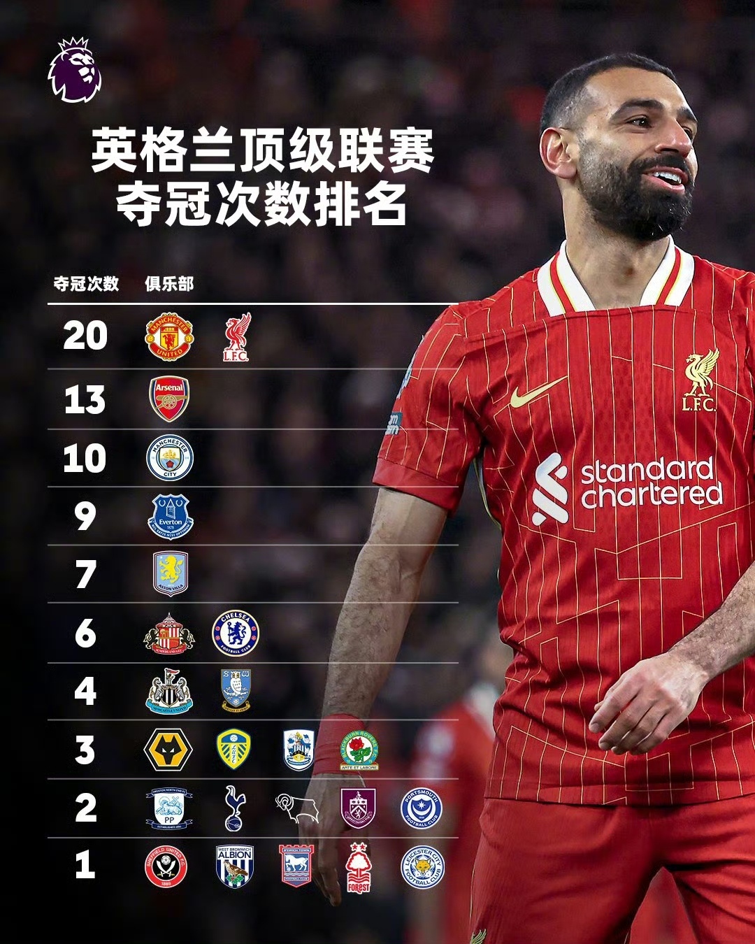 这是利物浦时隔近5年再夺英超冠军,也是他们队史第2次夺得英超冠军、第20次夺得英格兰顶级联赛的冠军,这样,“红军”利物浦与“红魔”曼联同样以20次夺冠的成绩并列英格兰足坛第一。值得一提的是,拿到英超冠军的利物浦至少可以获得1.847亿英镑的收入,其中包括冠军奖金5640万英镑,其他包括电视转播分配和联赛分成等。
