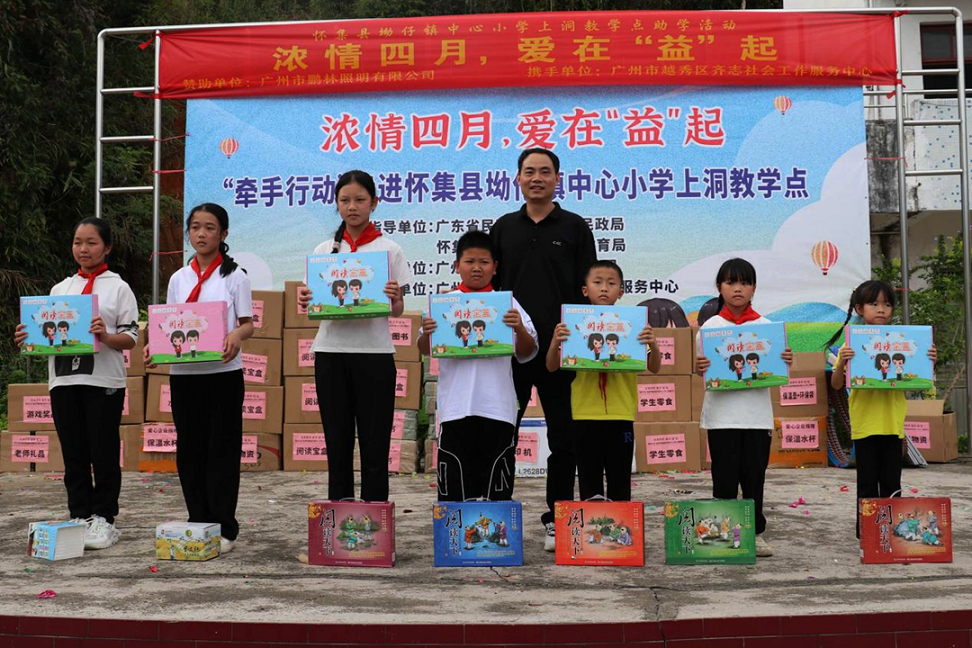 在省民政厅、怀集县民政局指导下,日前,广州市越秀区齐志社会工作服务中心联合广州鹏林照明灯具有限公司,到肇庆市怀集县革命老区坳仔镇中心小学上洞教学点开展“牵手行动”助学活动。