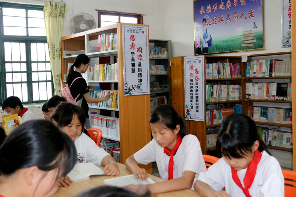 现场共捐赠图书1010册和电脑、打印机及体育器材等物资,并揭牌成立第44间“齐志公益书屋”,通过阅读分享、趣味游园等形式为乡村学子传递社会关爱。
