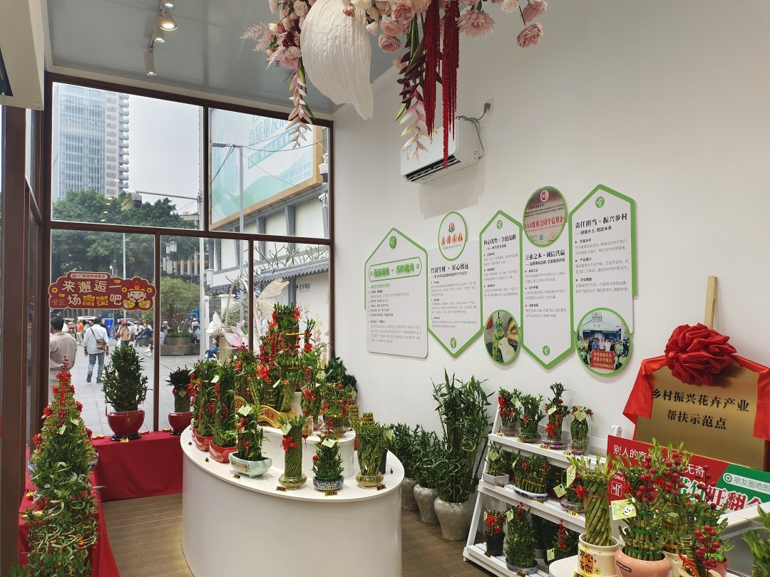 作为广州市“百千万工程”在中心城区的创新实践,北京路“花城花街”花卉产业展销区深度融合商贸核心优势,通过搭建“产区-展区-城区”三级联动平台,实现湛江遂溪特色资源与粤港澳大湾区消费市场的跨区域配置。越秀区市场监督管理局在此设立乡村振兴花卉产业帮扶示范点,以“一竹连城乡”的协作理念,为遂溪富贵竹开辟从田间到都市的“绿色通道”。通过整合“百千万工程”政策资源与千年商都流量优势,遂溪龙头企业广恒园林的匠心之作实现日均触达客流过万,打造“展销促产业、窗口带产区”的城乡共富样板。