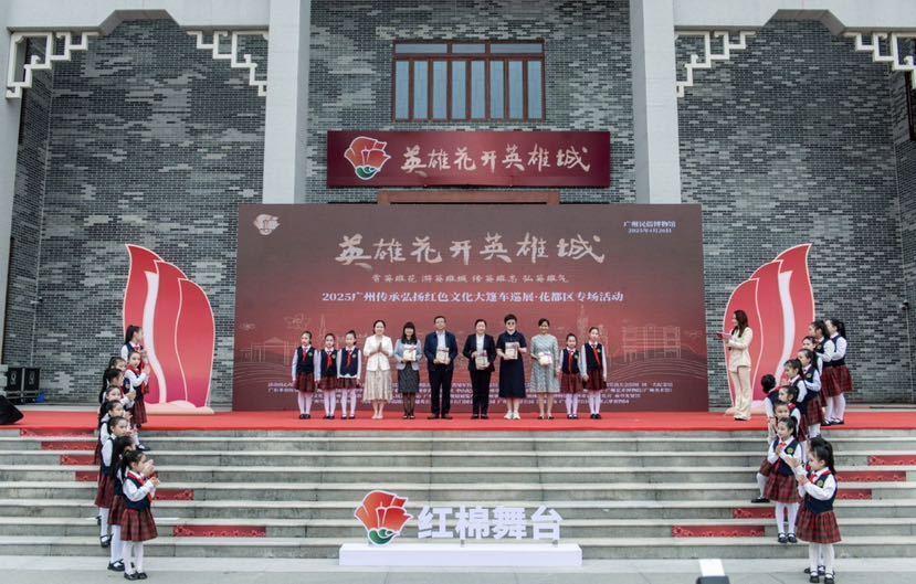 以文化赋能,让书香共享。近日,一辆绘有红色木棉花和“书香羊城”标志的大篷车驶入花都区博物馆,“英雄花开英雄城”2025广州传承弘扬红色文化大篷车巡展·花都区专场活动在这里举办。