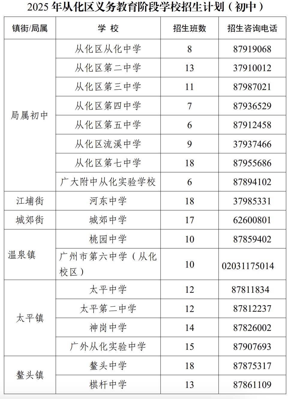 4月28日,广州市从化区发布“2025年广州市从化区义务教育学校招生入学工作细则”,2025年从化区义务教育阶段学校招生计划同步公布。具体如下: