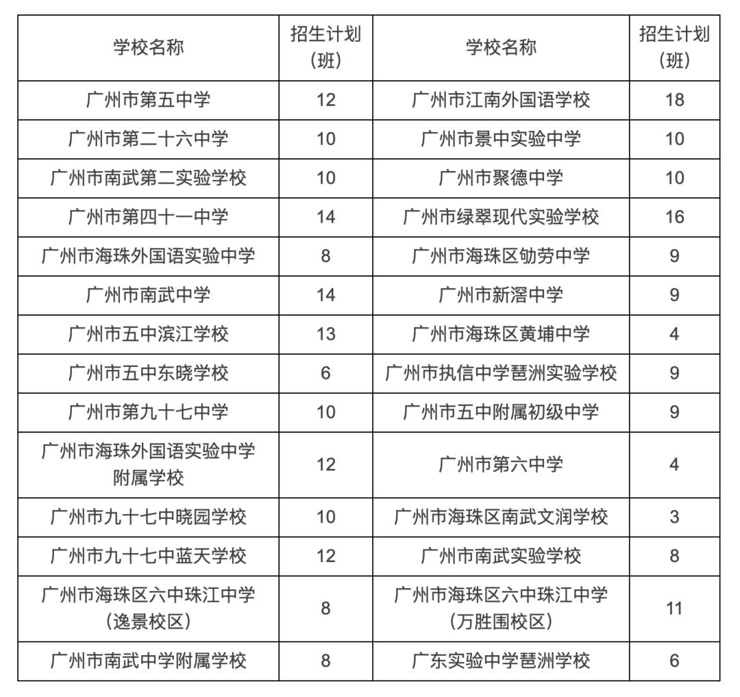 2025年海珠区公办初中招生计划表