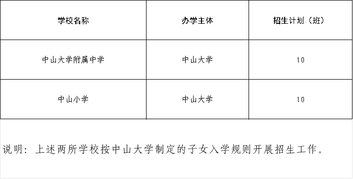 2025年海珠区企事业单位办中小学招生计划表