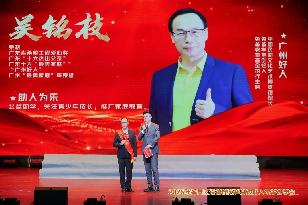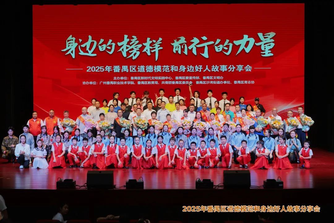 4月29日下午,由番禺区新时代文明实践中心、番禺区委宣传部、番禺区文明办主办,广州番禺职业技术学院、番禺区教育局、共青团番禺区委员会、番禺区沙湾街道办事处、番禺区青志协协办的“身边的榜样 前行的力量——2025年番禺区道德模范和身边好人故事分享会”在广州番禺职业技术学院学生活动中心二楼演艺大厅隆重举行。活动通过情景剧、诗歌朗诵、歌舞合唱等形式,生动展现好人和道德模范的感人故事,吸引近500名干部群众、师生代表共同参与。