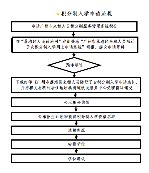 答:建议申请人在积分入学开始申请前,提前登录“广州市来穗人员积分制服务管理信息系统”(网址:https://djf.lsj.gz.gov.cn/bjfpublic/#/login)注册并按要求填报资料申报积分,核定积分分值后,才能参加2025年荔湾区积分制入学申请(具体申请时间请留意“荔湾区人民政府网”(http://www.lw.gov.cn)、“广州荔湾教育”微信公众号公布的信息)。