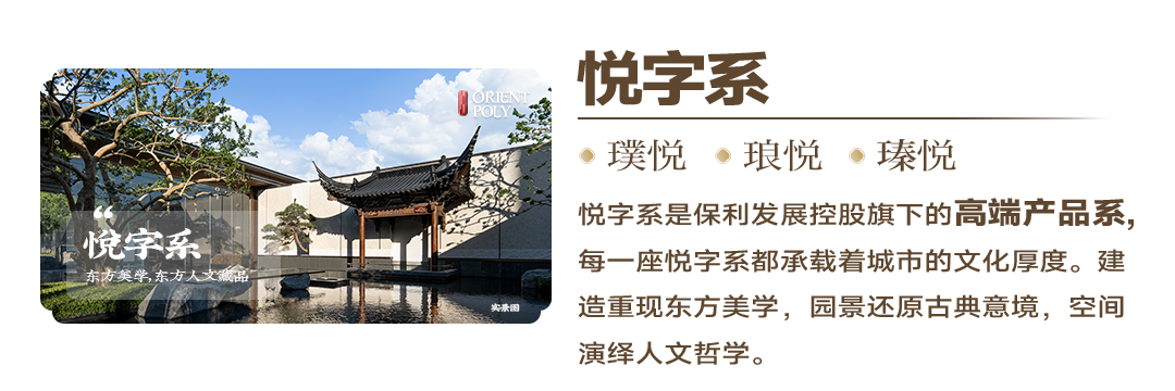 琅悦是保利发展高端产品系“悦”字系标准产品,呈现的是在新时代背景下的东方建筑美学。在此之前,广州已有天瑞、堂悦等表达东方美学的新中式代表作,而琅悦是在这些项目积淀经验下与广州花都这一历史悠久区域的一次呼应。