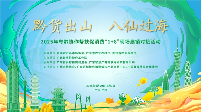 2025年粤黔协作帮扶促消费“1+8”现场展销对接活动,将于4月29日至5月1日在广东区域协作消费帮扶产品交易中心举行。活动以“黔货出山·八仙过海”为主题,聚焦贵州8个协作市(州)与广东6个帮扶市的深度联动。届时,超100种贵州生态农产品将集体亮相,涵盖茶叶、辣椒、菌菇、中药材、特色加工品等品类,呈现贵州“绿水青山”孕育的独特风味。活动期间,展销现场还将设置互动品鉴专区,市民可沉浸式体验贵州农产品的生态魅力。