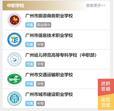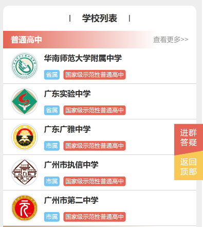 覆盖广州全市普通高中、中职学校,支持按“隶属关系”“学校类别”“性质”等多维度筛选。