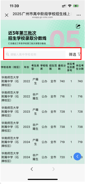 数据全:唯一整合广州中考三年分数线、两年招生计划的官方平台。