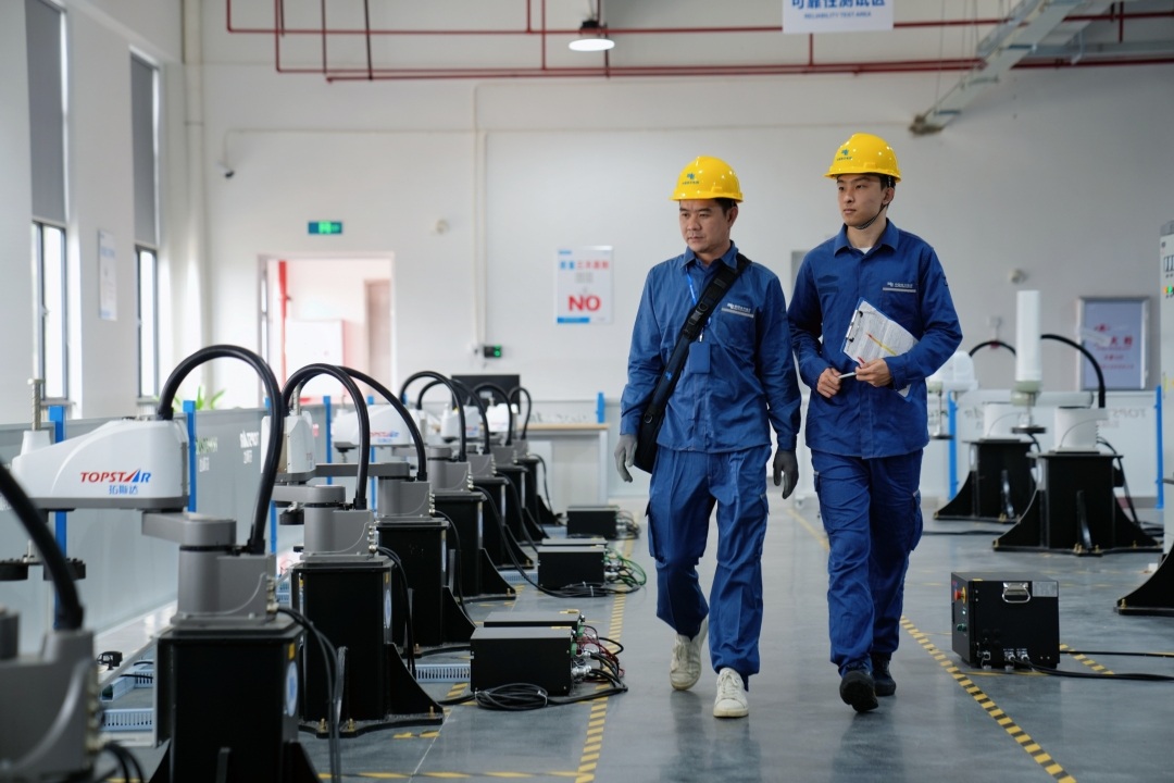 南方电网广东东莞南区供电局工作人员走访广东拓斯达科技,了解企业用电需求,协助企业检查设备运行,保障用电质量。(曾子权 摄)