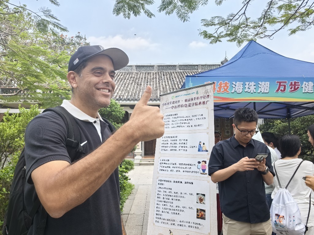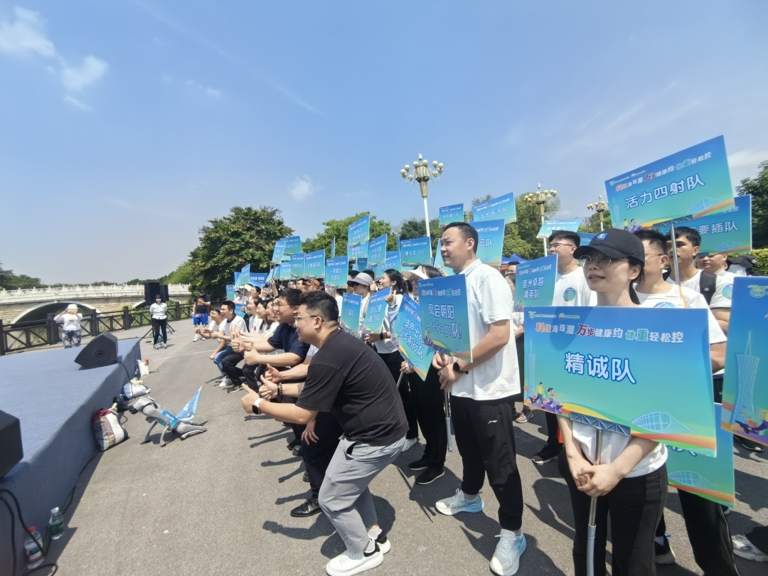 此次健走融入高科技元素,在机器狗“海旺”的热身带操和引领下,来自海珠区机关单位、医疗机构、18条街道的参赛者代表沿绿道开启2公里健走,展现出全民参与科学健身的热情。
