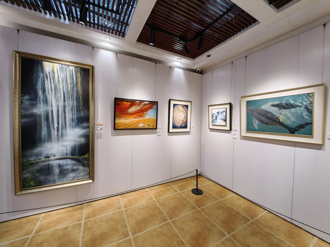 兰圃国香馆举办广州首个“会动”的流体画展——《凹凸闪动的梦·流香溢彩》。该展览展出由陈迪生和林瑞红共同创作的复合丙烯流彩艺术作品,是液态颜料在重力与化学作用下的即兴诗篇,是色彩挣脱笔触束缚后的自由落体。《金银落玉地》仅运用简单的色彩配以泼、抹、流、刮、吹、烧等技法,便具有磅礴的视觉冲击感。《九鱼图》等部分画作旁设有专属二维码,扫码即可观看AI生成的动态效果。当静止的鱼儿在手机屏幕上“动起来”时,静态艺术与数字交互在此碰撞出奇妙火花。画展现场不定期举办香薰蜡烛制作体验活动,让游客感受流体调色与香氛融合的创意乐趣。