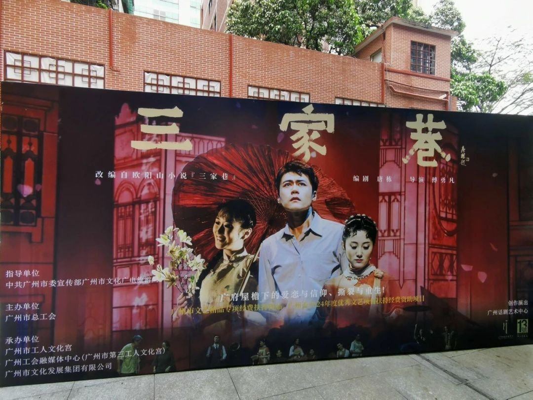 话剧《三家巷》由中共广州市委宣传部、广州市文化广电旅游局出品,广州市文化发展集团有限公司联合出品,广州话剧艺术中心有限公司创作演出。该剧根据欧阳山同名长篇小说改编,以20世纪20年代的广州巷弄为背景,讲述周、陈、何三户人家的年轻人在时代浪潮中的命运交织,展现了他们的成长与追求。