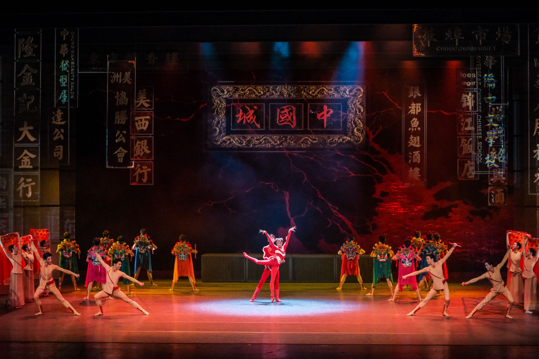 剧中,阿辉与阿兰这对年轻恋人,在时代浪潮冲击中不断面临梦想、情感、抉择。在这个故事中,“湾区”成为纽带,串起了过去、现在与未来,连接着家国情感。与此同时,剧中“湾区”对话“湾区”的方式也颇具巧思。剧中以纽约唐人街的场景,展现了华侨、同胞在海外的奋斗史。纽约湾区是世界四大湾区之一,与粤港澳大湾区遥相呼应,呈现了这部舞剧的用心之处。