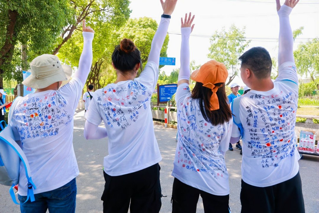 ”一个鸡蛋的暴走“现场,队员背上写着满满的祝福语。