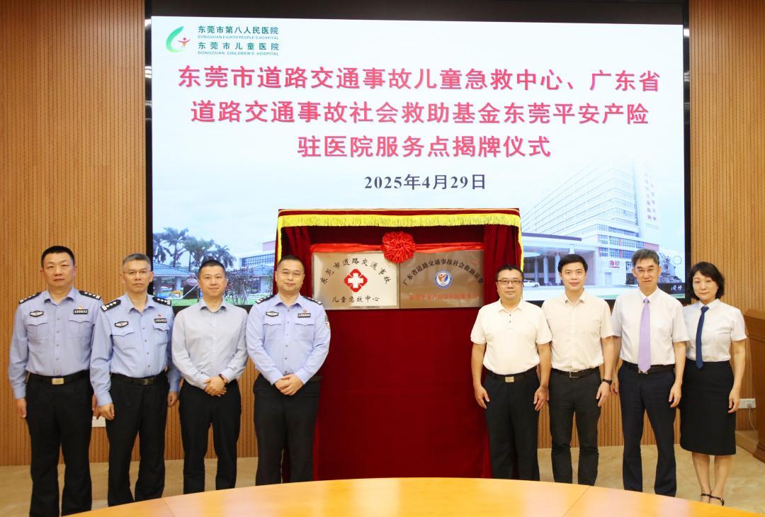 市公安局交通警察支队副支队长黄小龙,市卫生健康局三级调研员宋洪南,石龙公安分局副局长、交警大队大队长张军,中国平安财产保险股份有限公司东莞分公司副总经理张国宝,与市儿童医院党委书记钟柏茂、院长张咏梅等共同为其揭牌。