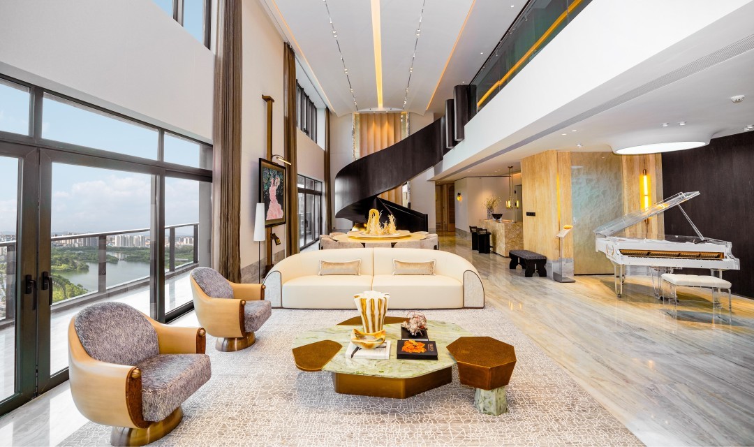 据悉,项目位于花都中轴CBD,紧临花都湖湿地公园联动国家经济开发区产业动能与广州北站商务区势能。15分钟即可直达白云机场与广州北站亚太枢纽,两大国际交通动脉,形成“空港+高铁”的双轨经济引擎。此次亮相的826㎡顶复,将于5月1日正式开放。