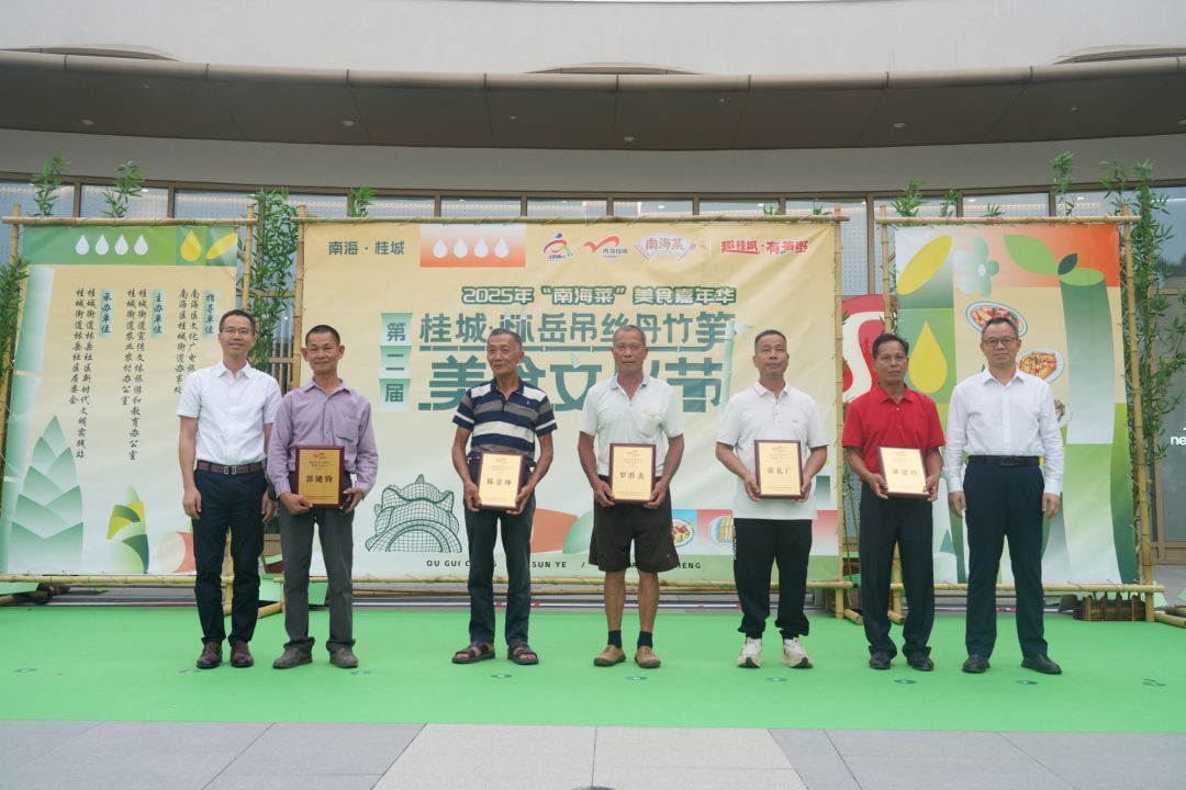 为进一步扩大林岳吊丝丹竹笋的知名度与影响力,本次美食节特别设立表彰环节,对在林岳吊丝丹竹笋文化推广中贡献卓越的美味传承人、种植传承人、推广大使予以嘉奖,他们中既有匠心独运的大厨、勤恳耕耘的种植传承人,也有引领创新的青年引路人。活动中,他们与市民分享了“与笋结缘”的故事。