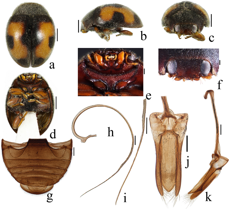 帽峰山森林公园以其丰富的自然资源和独特的生态环境,成为了众多生物的栖息家园。这里植被茂密,气候宜人,为各种昆虫提供了理想的生存条件。角毛瓢虫属(Horniolus Weise, 19011)隶属瓢虫科(Coccinellidae)、小毛瓢虫亚科(Scymninae),是一类重要的天敌昆虫,可捕食南洋臀纹粉蚧等多种粉蚧,对于维持农林和城市生态系统健康稳定具有重要作用。该属主要分布在亚洲东南部地区,目前全世界仅有19种。该瓢虫新物种的发现不仅丰富了对瓢虫生物多样性的理解,也为天敌资源的开发利用提供了科学依据。