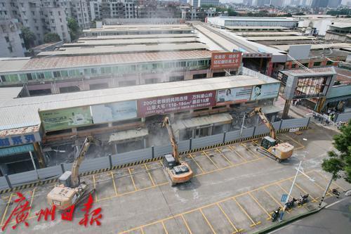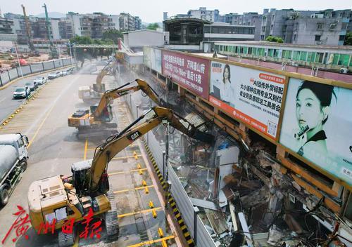 4月30日10时,在广州市白云区三元里街兴发广场四期西北门,随着14台巨型钩机“轰隆隆”地启动作业,三元里村城中村改造项目首开区安置房地块正式开拆。