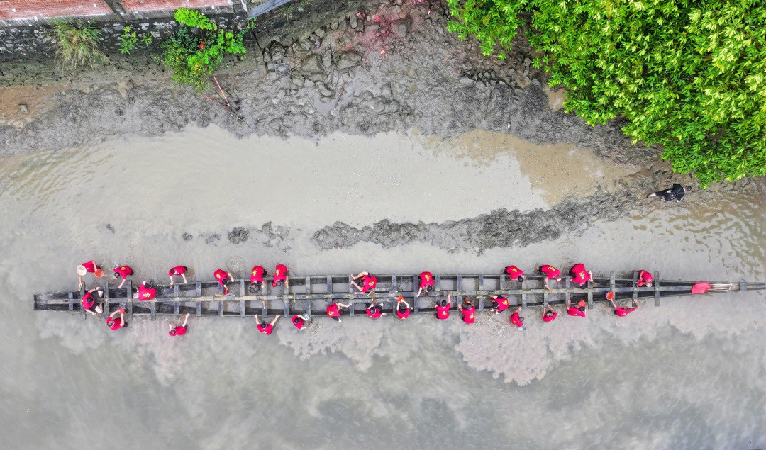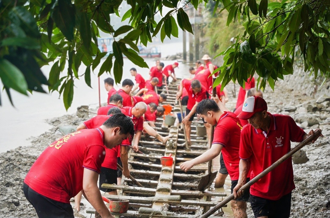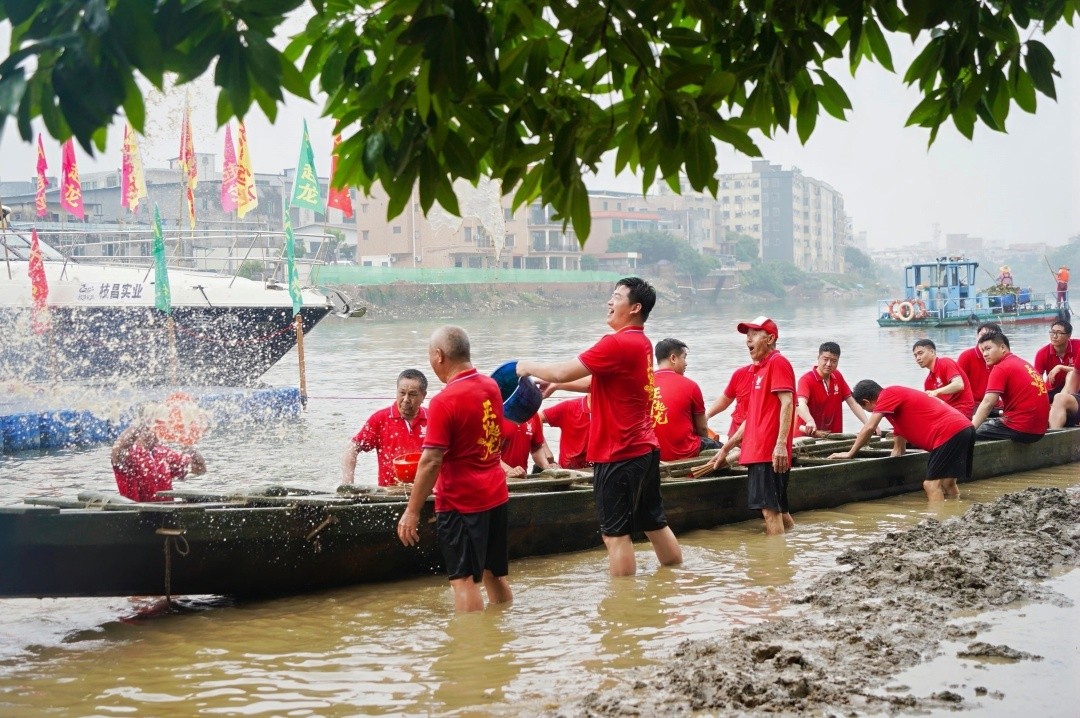 在“百鼓齐鸣、号子高唱”中,沉睡于河涌淤泥中的松木老龙舟被庄重唤醒,东莞龙舟月的序章由此拉开。这场具有独特岭南水乡韵味的“正丫起龙”仪式,不仅完整再现了传统“龙头开光、请龙头、起龙、洗龙、点睛”等古老礼俗,更展现了东莞龙舟文化的深厚底蕴和代代相传的非遗魅力。
