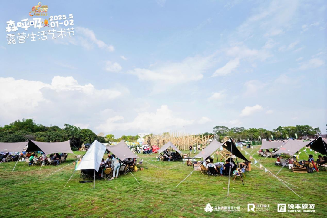 5月1日,“环南昆山—罗浮山县镇村高质量发展引领区”重点农文旅项目——位于增城石滩的森林光影音乐公园正式开园。作为园区首场主题活动,森呼吸·露营生活艺术节以“帐篷露营+音乐演出+户外体验+非遗”的创新形式,实现生态资源与文体旅创产业的深度融合发展。