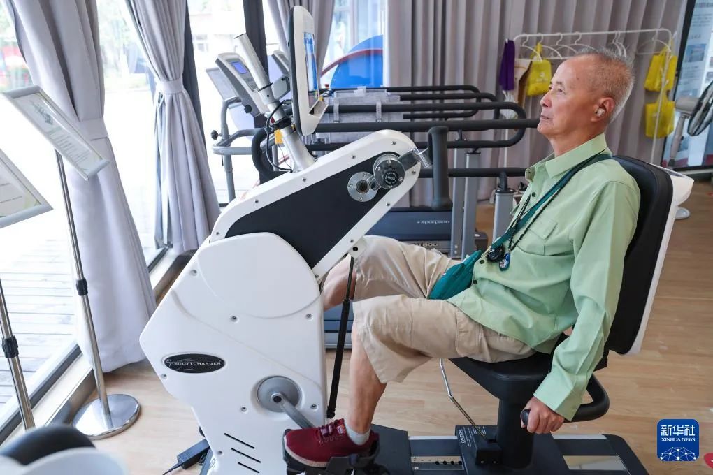 图/老人在社区邻里中心锻炼。新华社记者 徐昱 摄