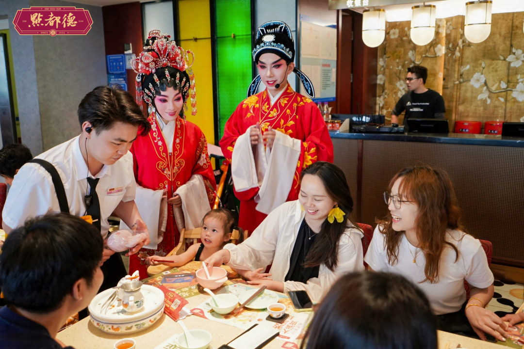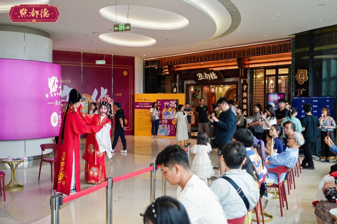 5月1日—5日,广州粤剧院打破传统剧场边界,在市民熟悉的城市生活场景中植入粤剧表演元素。每天中午12时,由柯超杏、潘璟钊、李良平、梁羽飞演出的《花好月圆》《梦回太湖》等经典折子戏在点都德星寰广场店开演,食客可边品“一盅两件”边赏粤剧名段。演出以粤剧快闪的方式,打造集美食品鉴、文化体验、粤剧表演于一体的高质量消费场景。