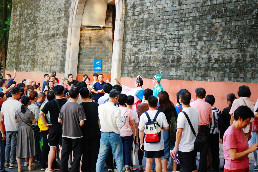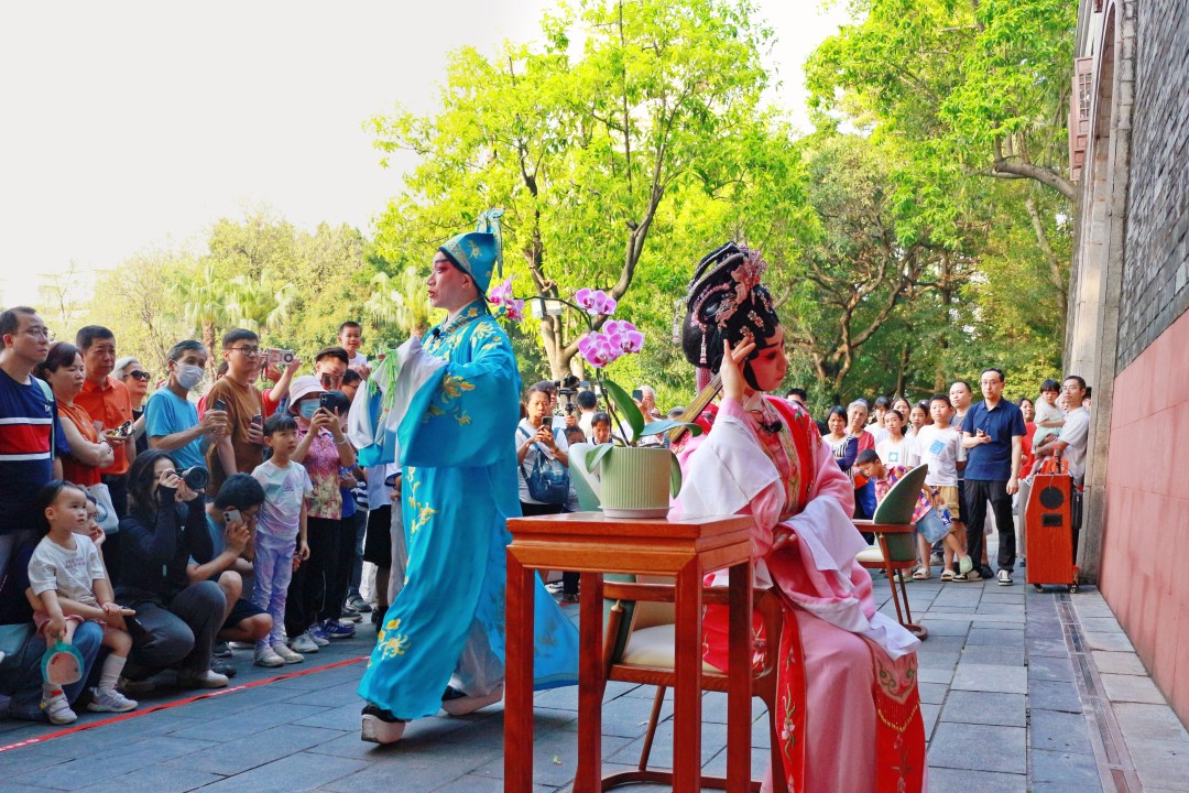 白天漫步千年越秀山,傍晚在百年城楼邂逅岭南戏韵。5月1日、5日,广州粤剧院联合越秀公园秀名城特别推出“五一”粤剧公益专场。演员身着戏服置身在越秀公园的古城楼下,结合园林景观进行沉浸式演出。游客不仅能近距离观赏廖凯汶、余旻乾表演的《游园惊梦》《白蛇传之游湖》,还可参与戏服试穿、身段教学等互动环节。