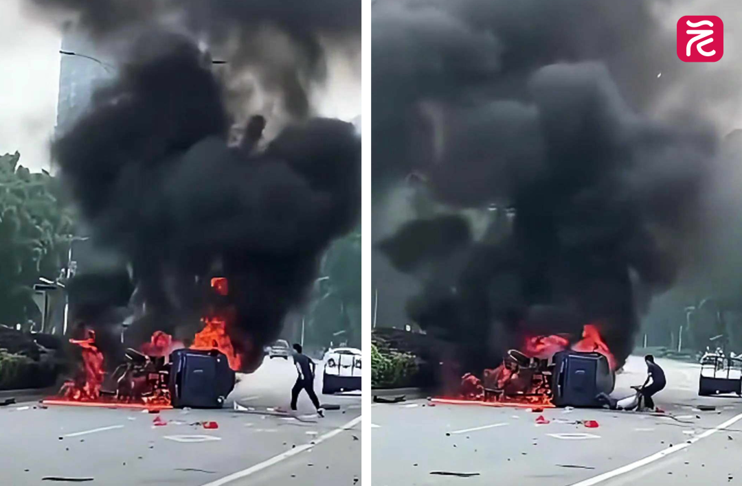 现场视频显示,当时火势迅猛,驾驶舱被浓烟吞噬,司机昏迷。钟威在拨打120后,毫不犹豫冲向火海,第一次破窗被爆燃逼退,但他没有放弃,仅用5秒观察火势,再次冒险贴近车身,弯腰从车的前挡风玻璃处,拼尽全力将昏迷的驾驶员拖拽出来,转移至安全区域。救人后,钟威看到120等专业人员已经到位,选择悄然离开。
