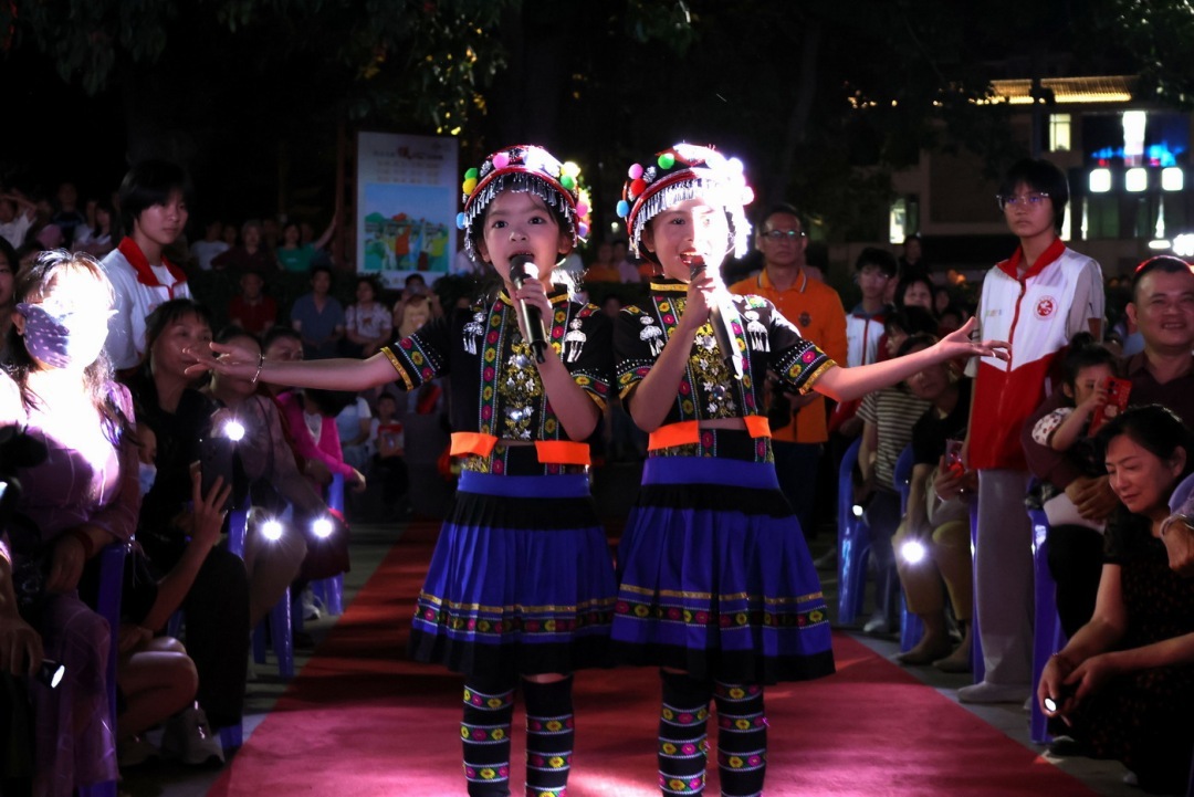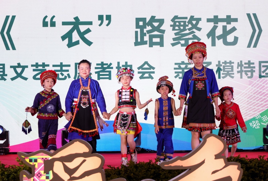 当晚7时30分,开场舞《番鼓齐舞乐瑶家》以激昂的鼓点点燃现场氛围。首场活动以百姓舞台为主题,以非遗展演、群众才艺、互动体验等形式的文化盛宴正式启动。该活动重点突出“群众主角”理念。来自本县的壹心艺术、雅慧艺术馆等团体的青少年献上小组唱《瑶花花开》、古筝演奏《上春山+青花瓷》等节目,展现传统与现代的融合之美。县民族文化传承中心带来的舞蹈《摆手瑶妹等等我》、情景表演唱《火塘夜话》等,以艺术形式讲述乡村振兴故事。亲子模特团演绎的瑶族服饰走秀《“衣”路繁花》,更将瑶绣、银饰等非遗元素与时尚风采结合,赢得阵阵喝彩。