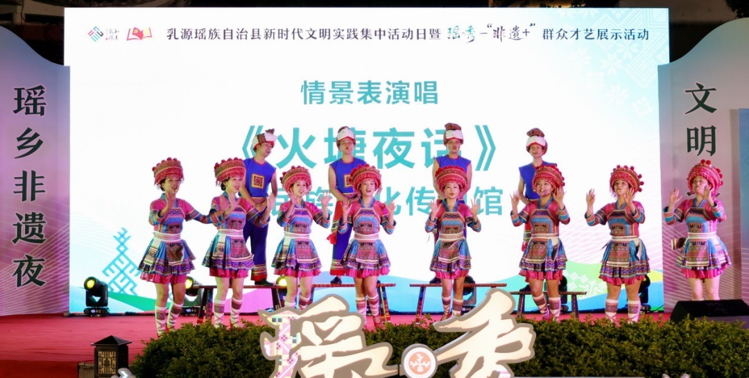 5月1日晚,韶关市乳源瑶族自治县“瑶·秀——‘非遗+’群众才艺展示”系列活动在县文昌公园开幕。韶关市县有关领导和乳源县道德模范、身边好人代表、文明实践团的志愿者代表及现场市民群众近千人共同拉开了为期8个月的周末文化嘉年华序幕。