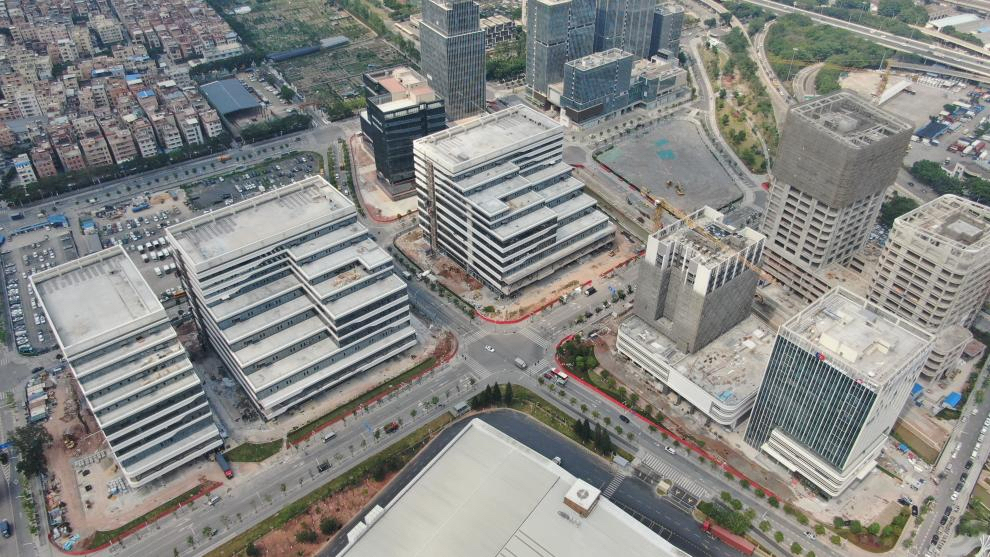 项目位于广州市荔湾区海龙街道,是荔湾区装配式建筑示范项目,单栋厂房装配率超过50%。总规划用地面积约3.89万㎡,总建筑面积约18.5万㎡,建设内容包括4栋高层厂房和1栋厂房配套。截至目前,项目三个地块5栋单体建筑已全面封顶,现阶段正进行幕墙、机电安装、消防、给排水、装饰装修工程以及园林绿化工程施工,预计今年6月完成竣工验收。