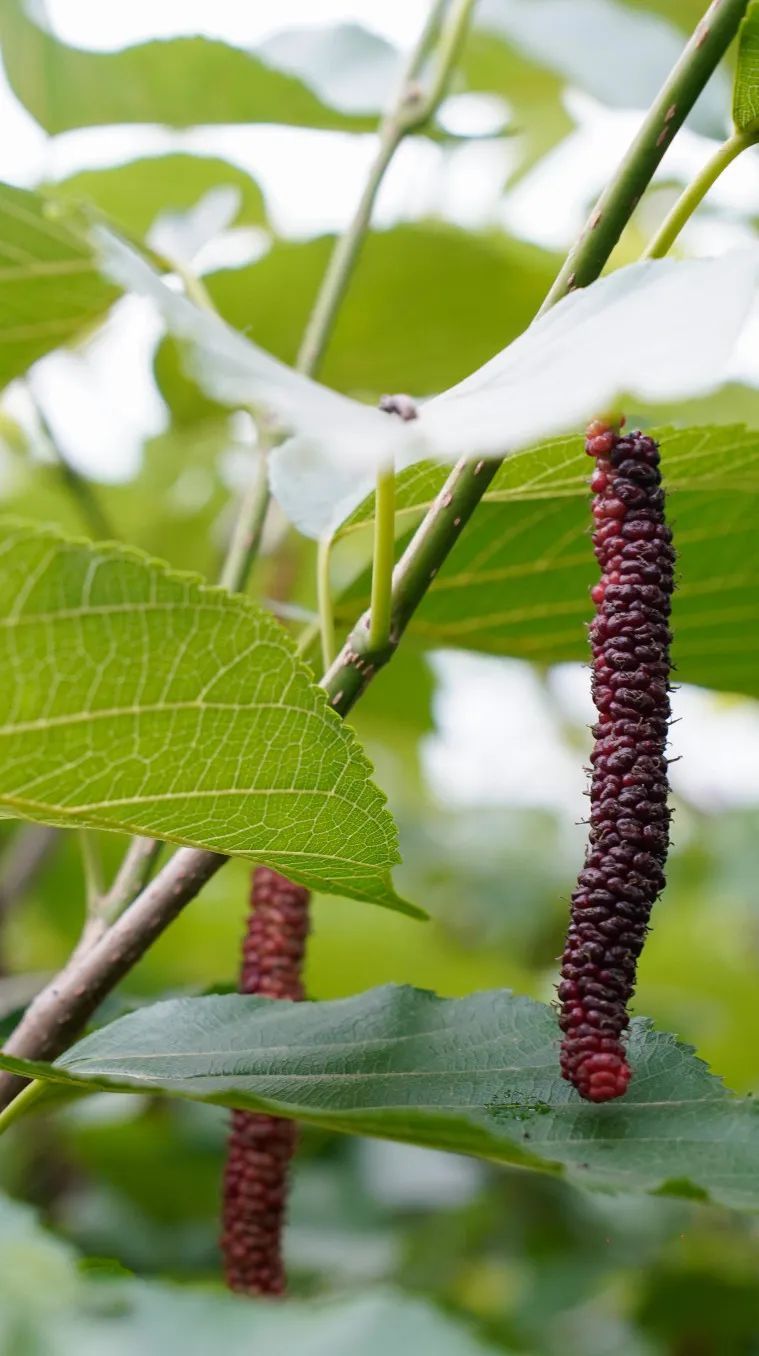 桑葚选鲜红色的,黑色的桑葚成熟度过高。