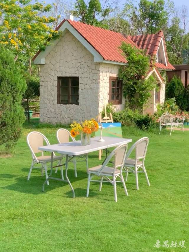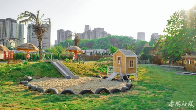庭院里有草坪,孩子们或肆意奔跑、或玩飞盘、或骑行;还有儿童沙池、萌宠投喂解放孩子天性;旁边还有一个小木屋,拍照很出片。妈妈们围炉煮茶一键开启“优雅带娃模式”,阳光穿过草编遮阳棚洒在茶桌上,随手一拍就是小红书爆款,九宫格都装不下这氛围感。