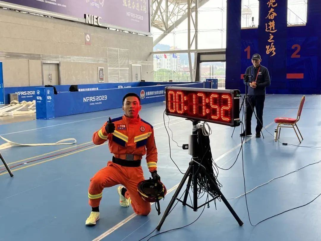 黄攀达并没有满足于此。备战第二届全国消防行业职业技能大赛期间,他每天清晨迎着第一缕阳光走上训练场。上千次地翻越障碍板,无数次地跨越独木桥……长达8个月的训练中,他不断突破自身极限。最终,他从近百名参赛选手中脱颖而出,以17秒52的绝对优势,一举夺得百米障碍项目全国第一。